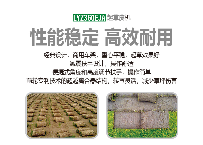 美神起草皮機根據(jù)人體工程學原理,改進了操作方式,扶手增加減震,后輪為萬向輪并配有超越離合器,轉彎方便且不損壞草坪,增加了操作者舒適度。本產品可根據(jù)不同草種和不同狀態(tài)草皮隨意調整起草的深度、角度,效率高。