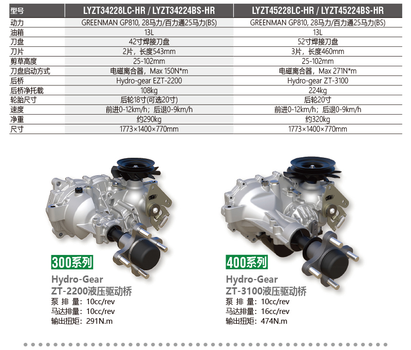 · 選用美國(guó)Hydro-gear EZT 液壓驅(qū)動(dòng)系統(tǒng),